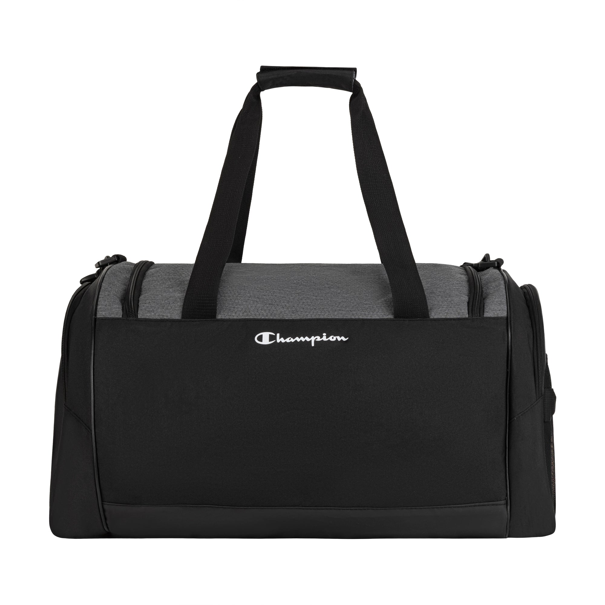 Professional Performance. Step up your game with the Arena Duffel Bag. designed for those who demand both functionality and style. This thoughtfully engineered 22 x 12 x 10 bag combines Champion’s athletic DNA with sophisticated design elements. The adjustable strap system accommodates different carrying preferences. while strategically placed exterior zip pockets provide organized storage for various essentials. The shoe pocket keeps footwear separate from clean gear. and the interior zip pocket offers secure storage for important items. HD prints and embroidered appliqué demonstrate Champion’s commitment to premium details. complemented by the signature branded zipper pull.