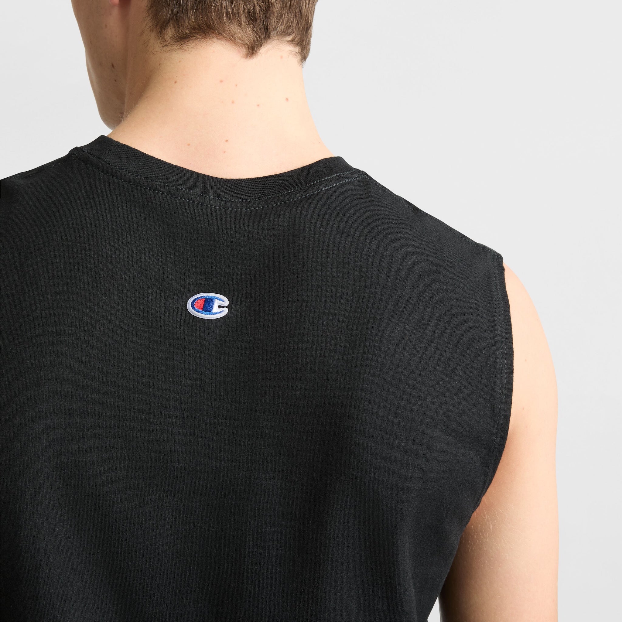 This muscle tank is the perfect sleeveless option for anything from the gym to the beach or your local 4th of July BBQ . You’ll love this tank for all occasions. made from a comfortable cotton or cotton blend that’s extra soft. With its bound collar and sturdy stitchwork. this top is designed to be a longtime fave. Baseball inspired Champion script logo filled with stars and stripes for added brand recognition. Pair this shirt with your best Champion shorts or joggers for an athletic look.