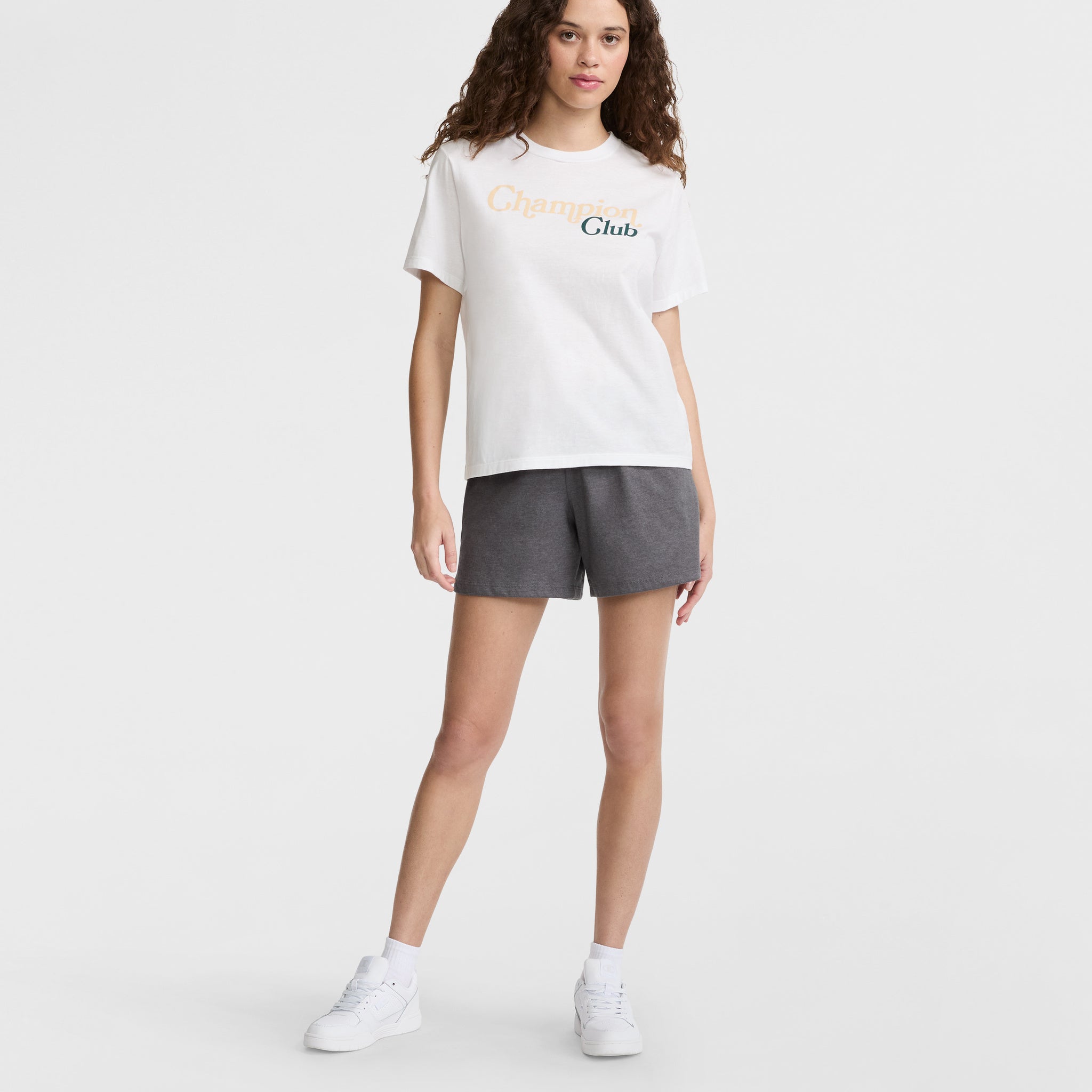 This Champion Club graphic women’s t-shirt has a classic fit that’s not too tight or loose. This casual crewneck tee is made from a soft cotton blend. making it extra comfortable and just the right weight. It’s detailed with a sturdy. ribbed collar and robust stitch work for that can’t-beat quality you know and love. The iconic C logo on the sleeve represents your brand pride. making this t-shirt a staple for any wardrobe.
