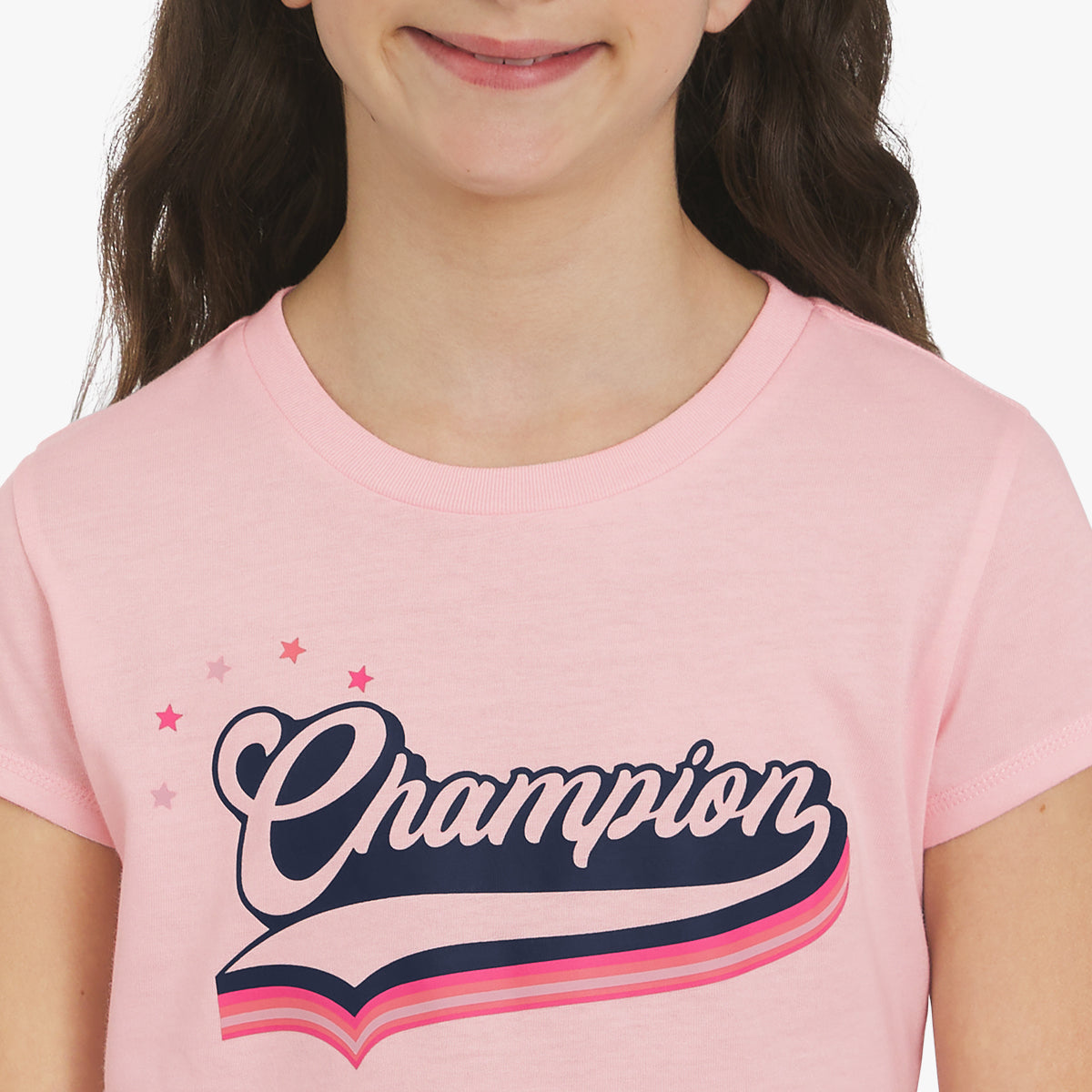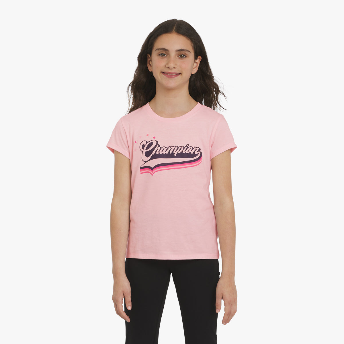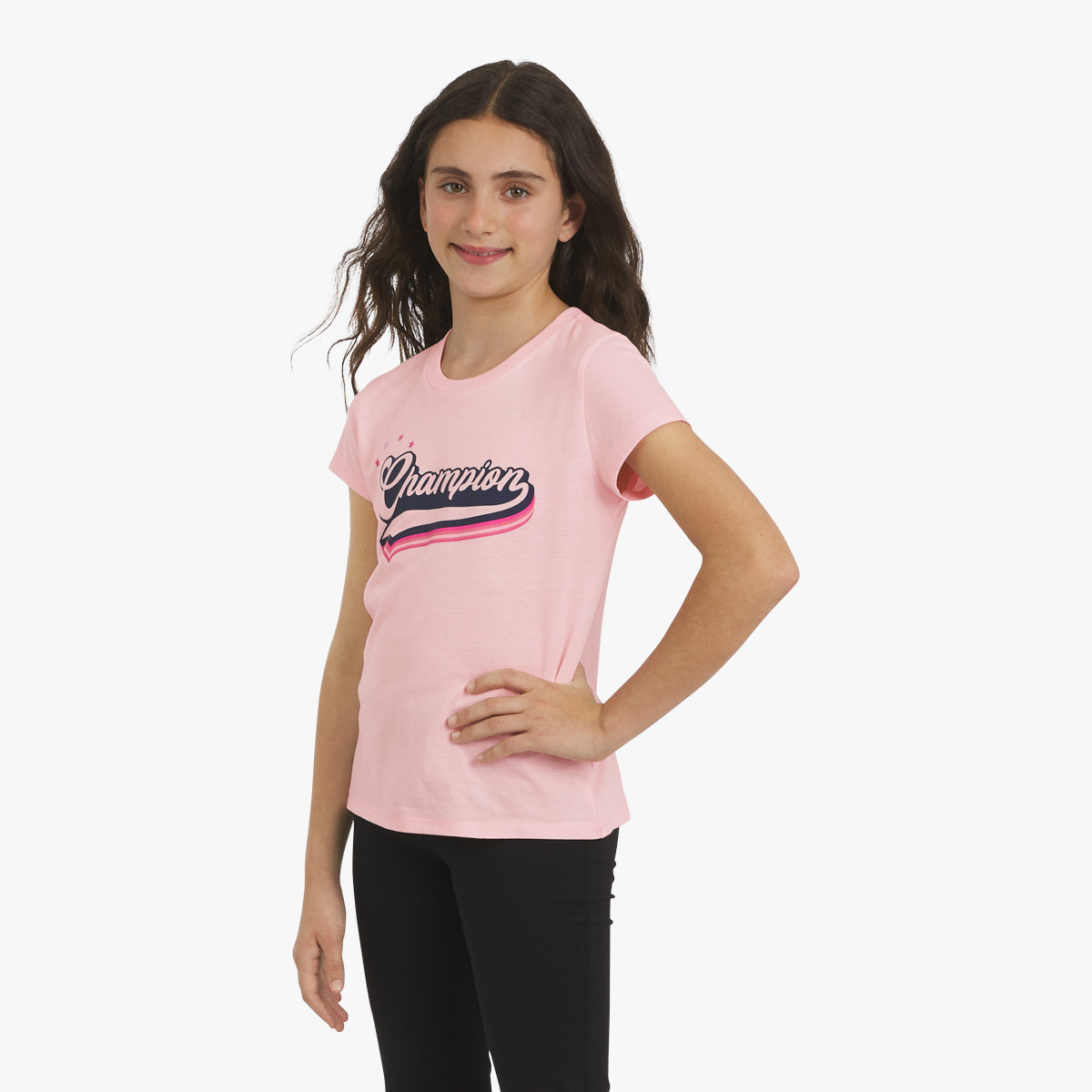 There’s no better way to showcase Champion pride than with one of our bold graphics. Crafted in soft. breathable cotton jersey. this girls’ graphic tee will keep her comfy from playtime to downtime. It comes in a variety of unique. colorful graphics. so she can choose her favorite (or collect them all). Cute. lightweight. and easy to wear. this versatile girls’ t-shirt can be paired with joggers. denim. or even a little skort. It’s sure to be a repeat in her fall wardrobe.