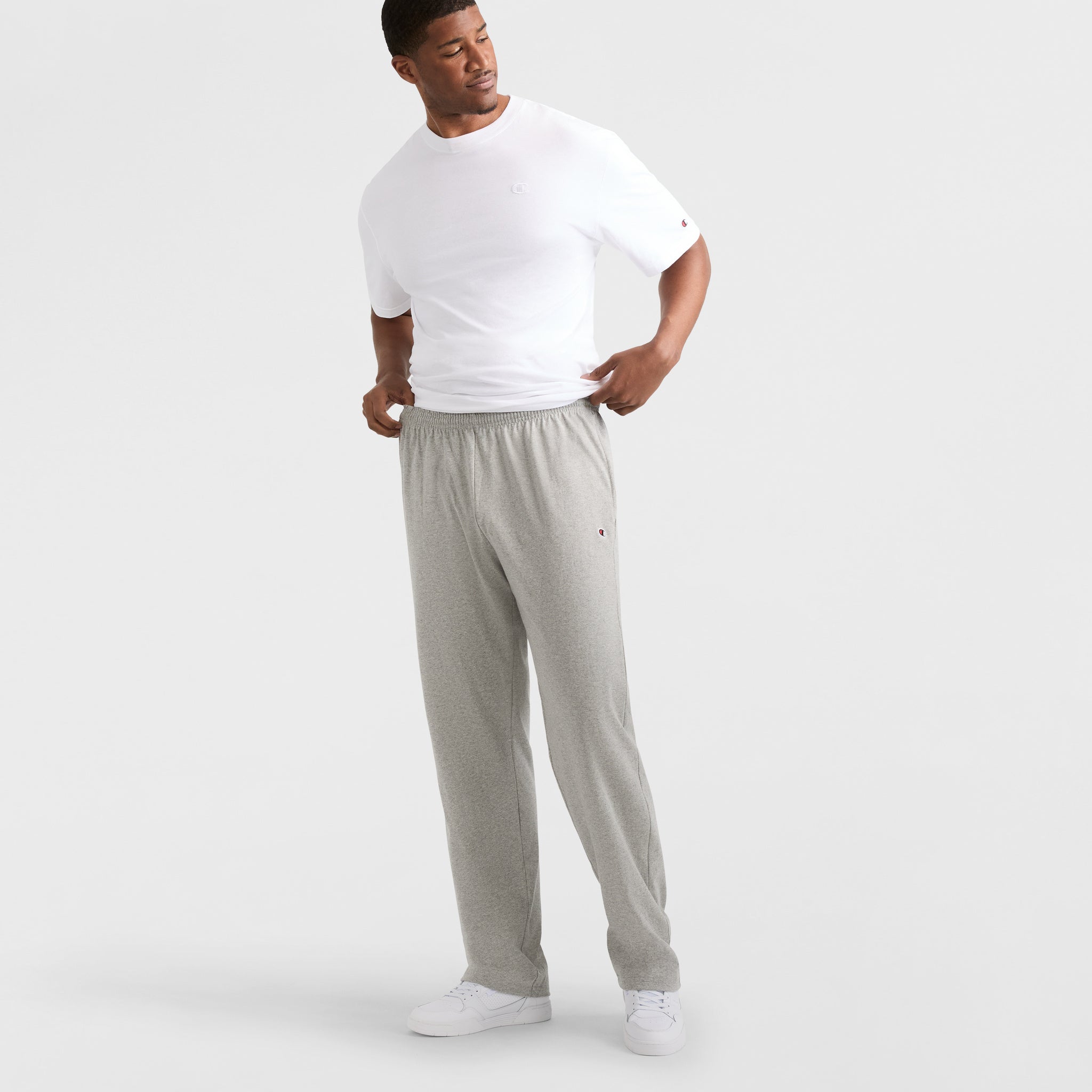 These open-hem lounge pants for big &; tall men deliver ultimate lightweight comfort and are as soft as your favorite jersey knit t-shirt. Made for everyday at-home wear. their minimalist design features a stretch waistband with drawcord closure for a customizable fit. Convenient side pockets are the perfect place to store your phone. wallet. and more. while the open hem completes the laid-back look. These men’s big and tall lounge pants are finished with a Champion C logo patch at the left hip and are ready to be paired with your favorite tee or hoodie for an effortlessly cool ‘fit. With inseams of 31 for big sizes or 36 for tall sizes. there’s an option for almost every guy.