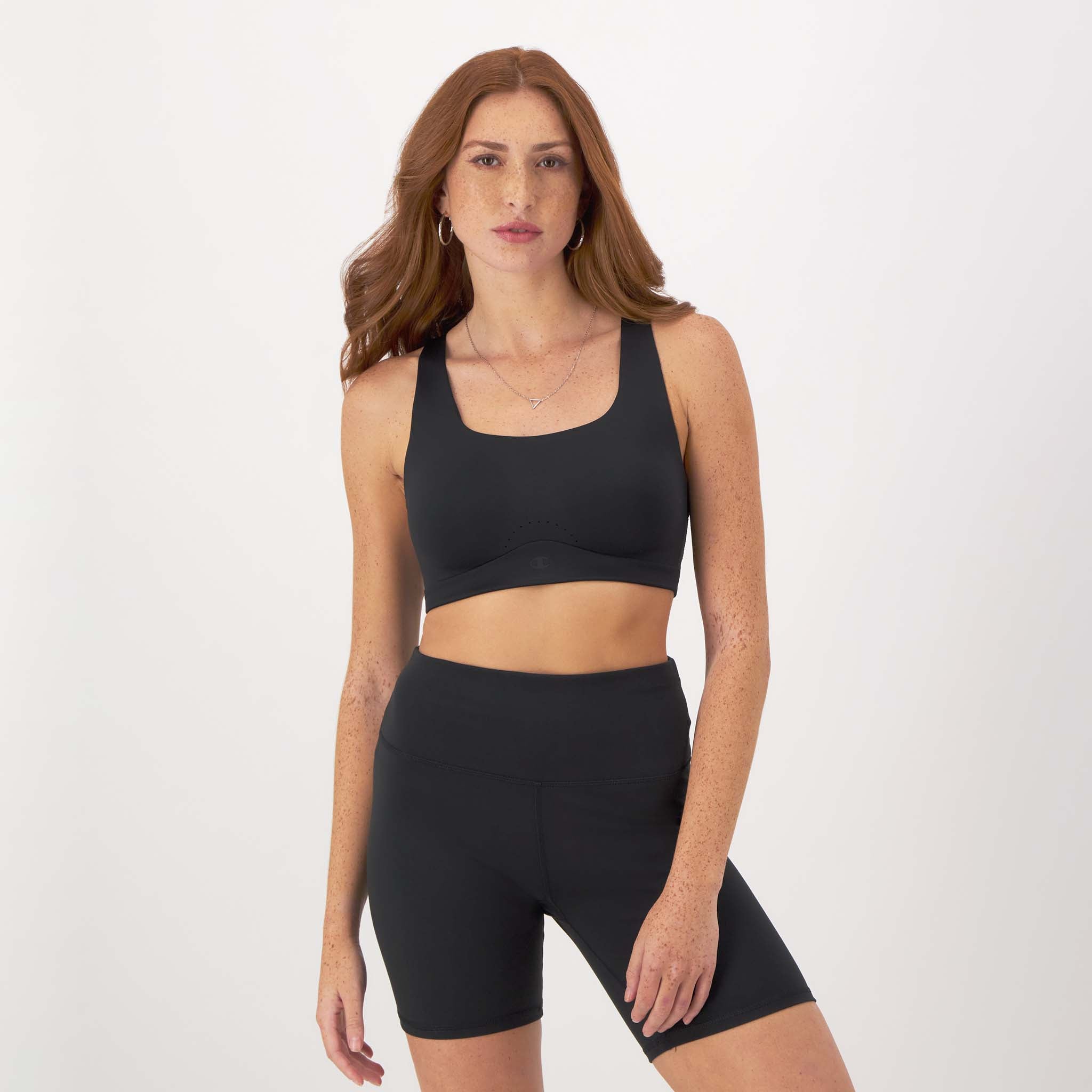 Unlike other sports bras. this Motion Control High-Impact Sports Bra with max support accounts for band and cup size. offering you a custom fit designed for all-day comfort. With a scoopneck and racerback design. this athletic bra offers chic style and maximum support. Innovative Motion Control Cups feature targeted support zones to help reduce bounce. while Double Dry technology wicks moisture from the skin. Mesh panels and a perforated design increase ventilation to help keep you comfortable during and after your sweatiest pursuits. 4-way stretch and adjustable straps keep comfort a priority so you can workout with zero distractions. The iconic C logo sits on the center band of this women’s sports bra. so everyone will know what you’re all about.