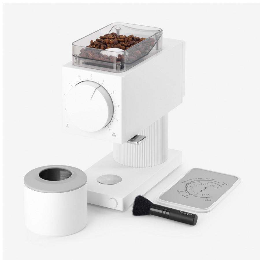 Designed by Nick Terzulli. Fellow’s VP of R&D and Certified Q Grader (the highest certification in sensory coffee assessment). Gen 2 Brew Burrs grind finer and with more precision. The broader grind range is exceptional for every brew method except espresso. With new anti-static technology for less grind mess. a redesigned load bin for smoother bean feeding. and an expanded 100 gram catch cup for batch brews. the next generation of grinding is here.