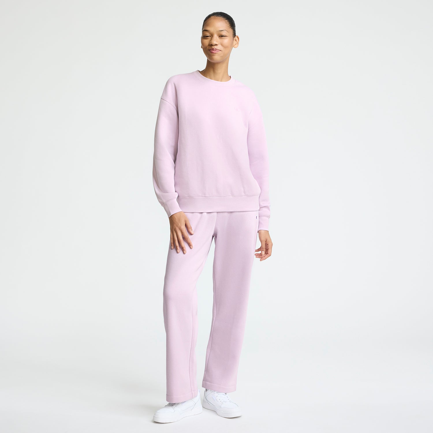 The Champion Small C Midweight Crewneck is a wear-anywhere staple made for everyday ease. Crafted from soft. midweight cotton-poly fleece. it offers warmth without all the extra weight. The drop shoulder and standard fit create a clean. flattering silhouette that looks effortlessly cool whether worn solo or layered. Tonal C logo embroidery at the chest and the signature embroidered C patch on the sleeve add subtle heritage style. From dressed up to dialed down vibes. this crew delivers clean-cut comfort that lasts all day.