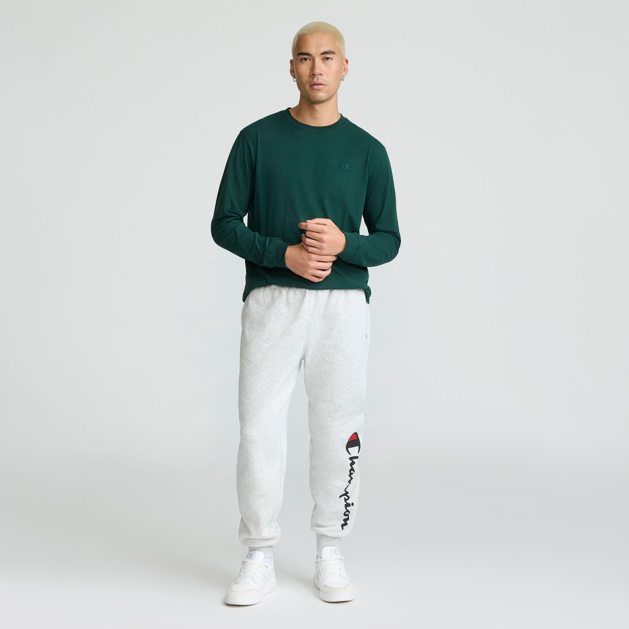 Iconic Champion script spans the side of these men’s joggers for a classic sports look. Versatile and comfortable. these best men’s joggers keep you comfortable at the gym or out and about. Woven with a soft cotton blend and brushed on the interior. we’ve got quality covered. These men’s joggers have adjustable drawcords and an elastic waistband that lend to a fit that feels good. Two side pockets hold your tech and essentials while you’re on the go. Needless to say. these men’s joggers do the most.