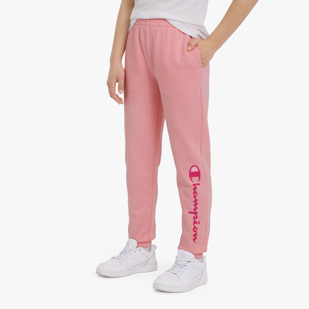 The ultimate everyday pants. these girls’ joggers are designed keep her comfy and stylish no matter what the day brings. Crafted in our iconic fleece for guaranteed softness. they feature an elastic waist for easy on. plus iconic script logos down the side so your girl can stay repping Champion style. The best part? These versatile jogger pants will look cute with everything she owns. from graphic tees to hoodies.
